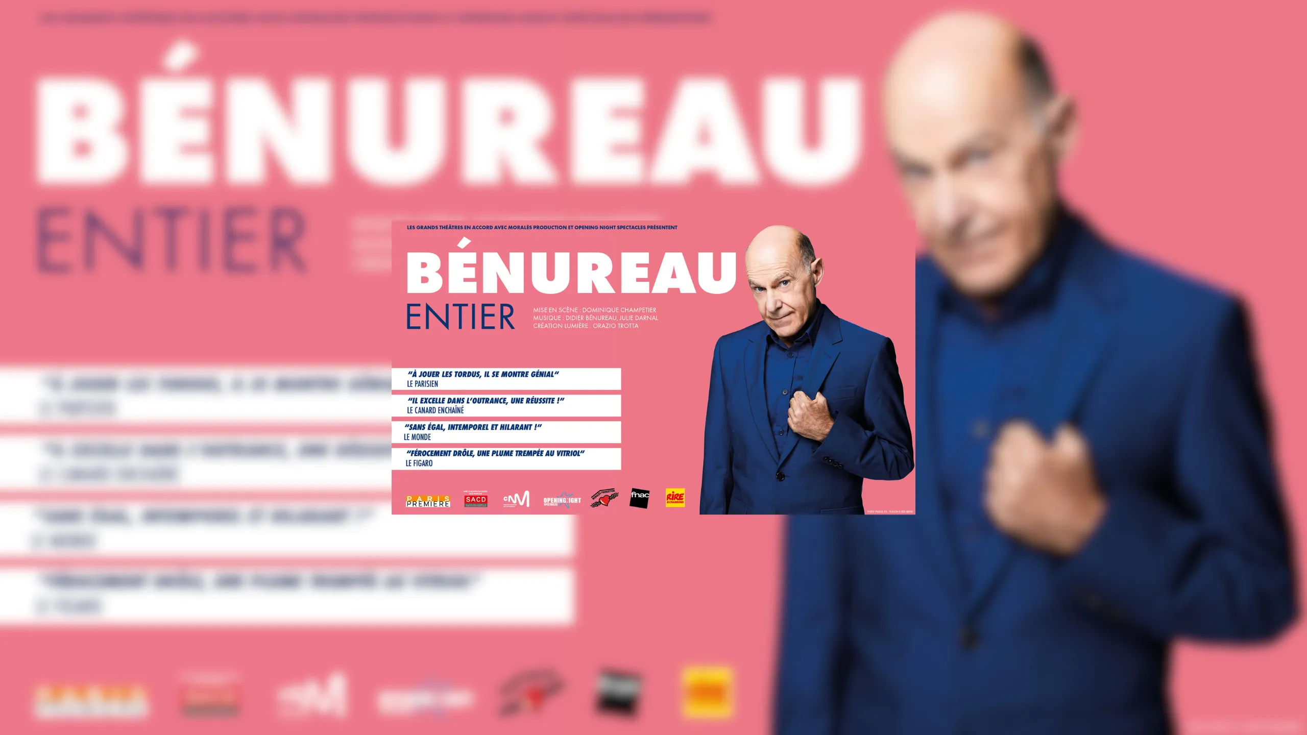 L’idée, pour ce one man show était de retrouver des personnages de mes précédents spectacles pour leur faire côtoyer de nouveaux personnages et de mêler parfois des textes à l’humour plus noir :